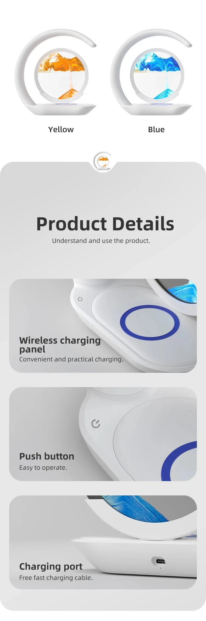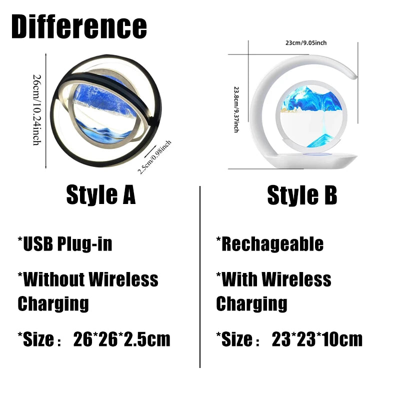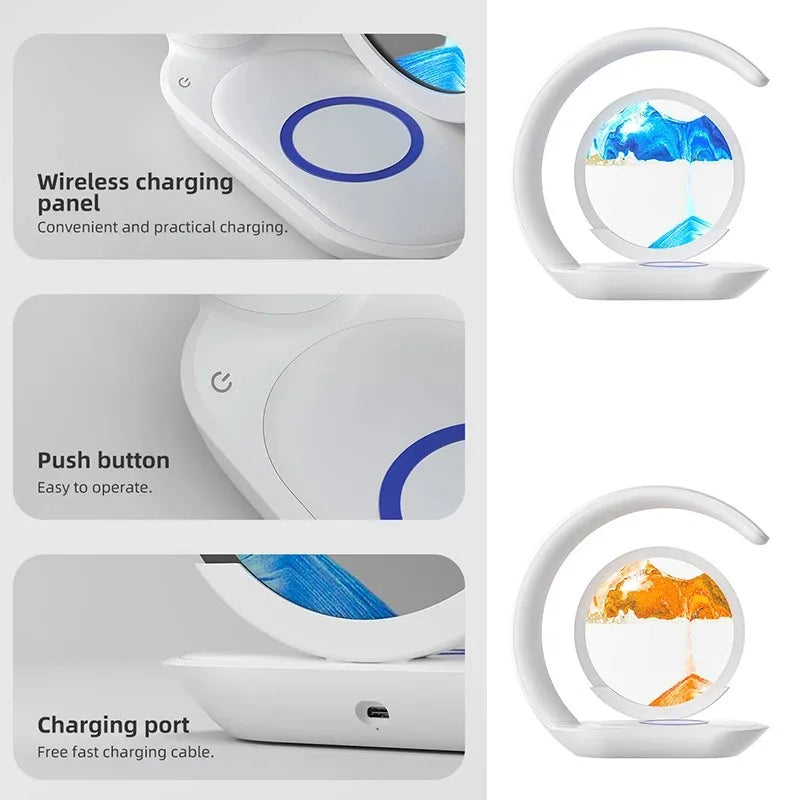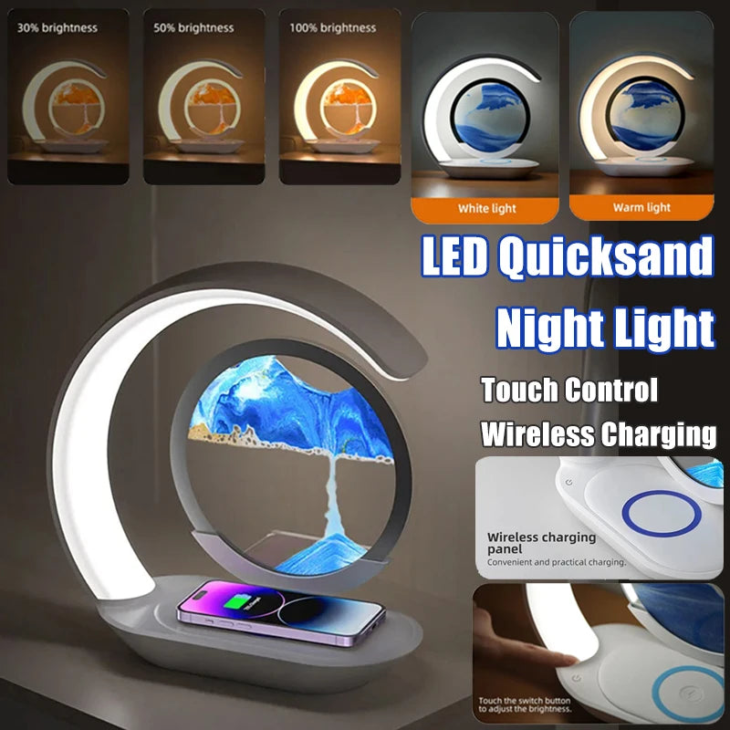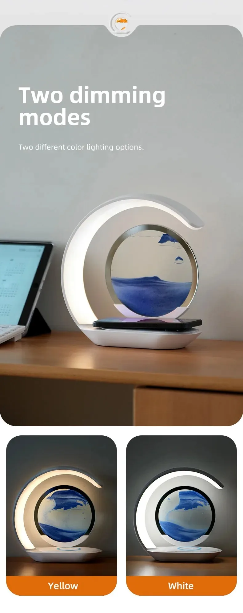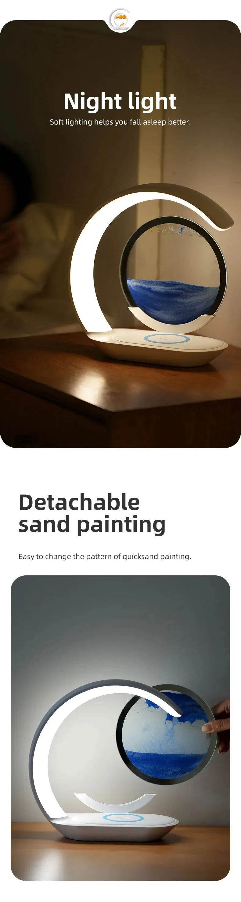 3D Moving Sand Art Night Lamp LED Quicksand Light Mobile Wireless Charge Touch Control for Bedside Sandscape Lamp Home Decor