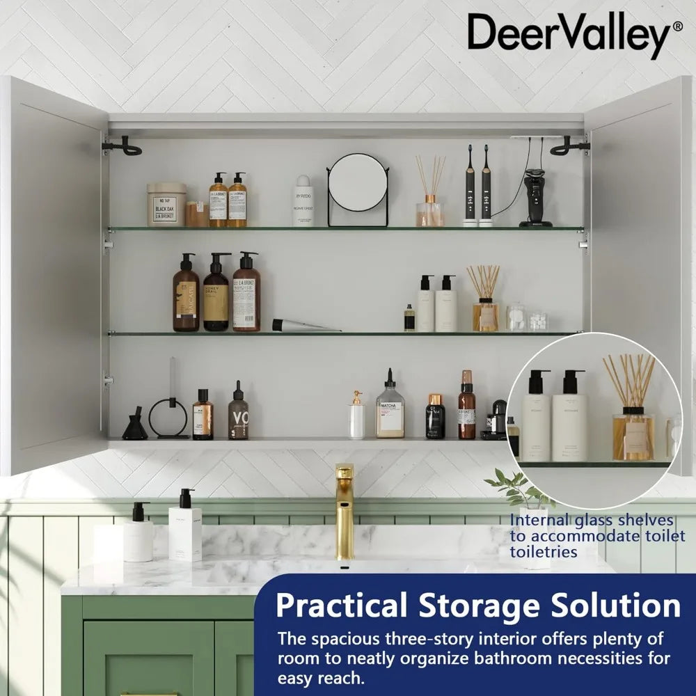 - 【Sturdy & Fashionable Construction】Fashioned with eco-friendly, 3mm high-definition copper-free mirror and featuring waterproof design, our medicine cabinet with mirror embodies both resilience and sophistication, ideal for bathrooms, hotels, salons, and beyond.