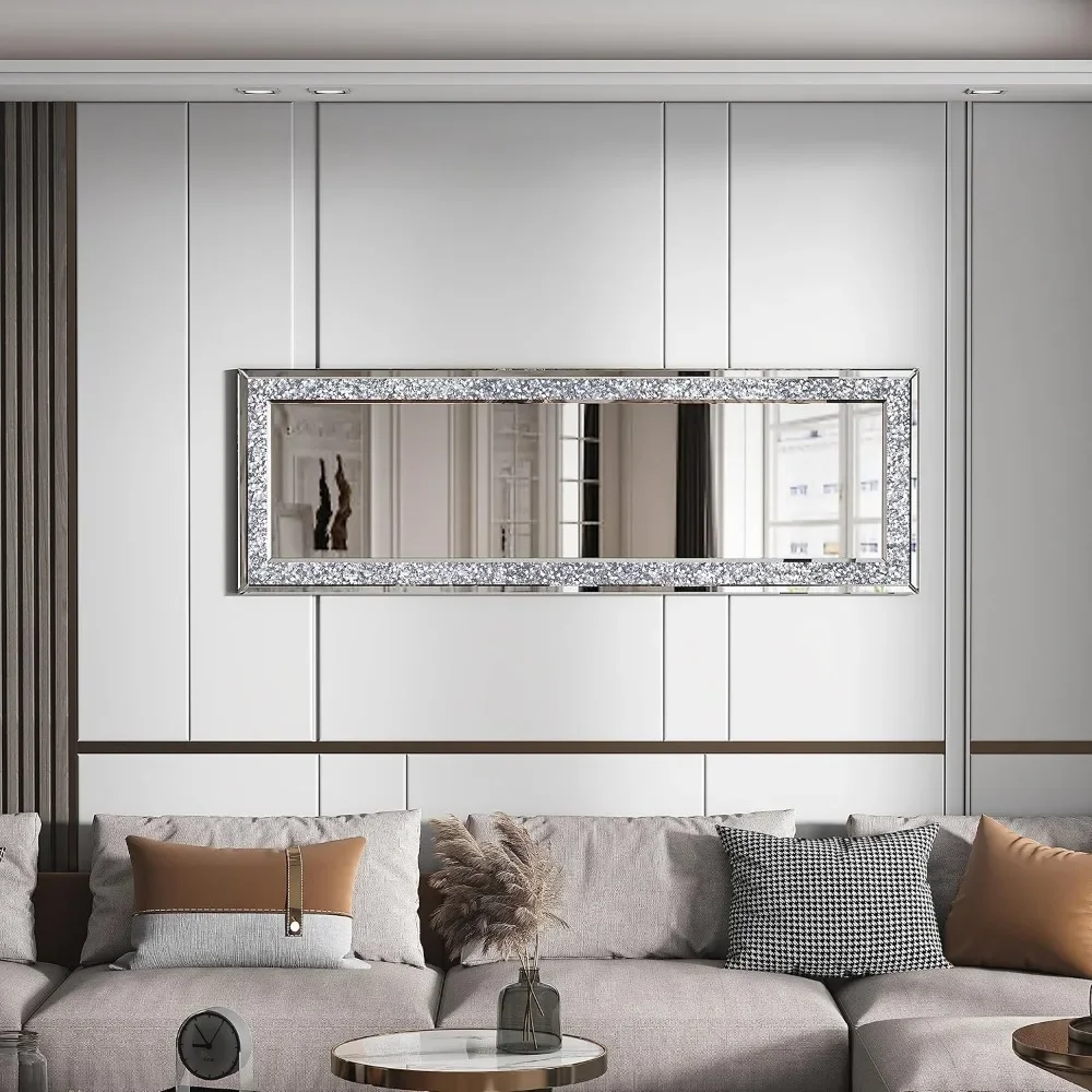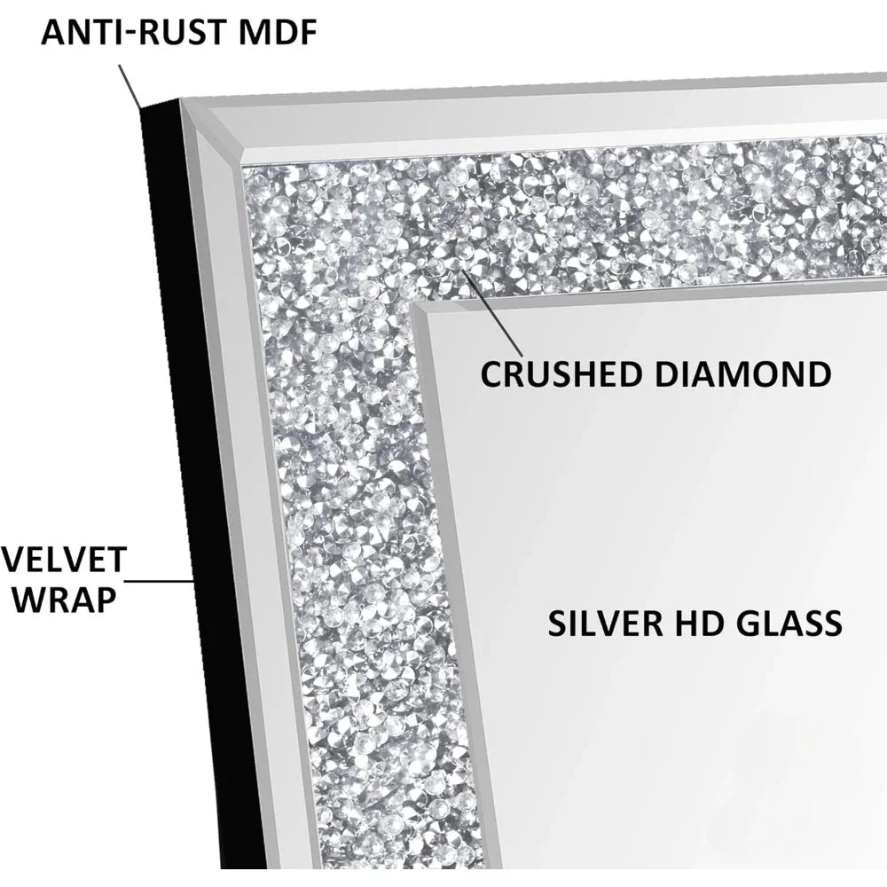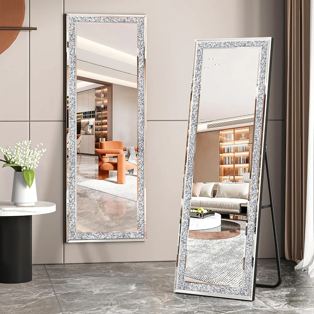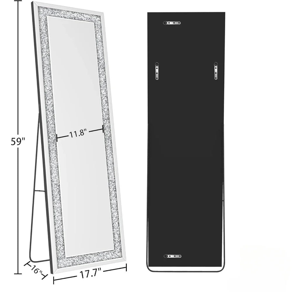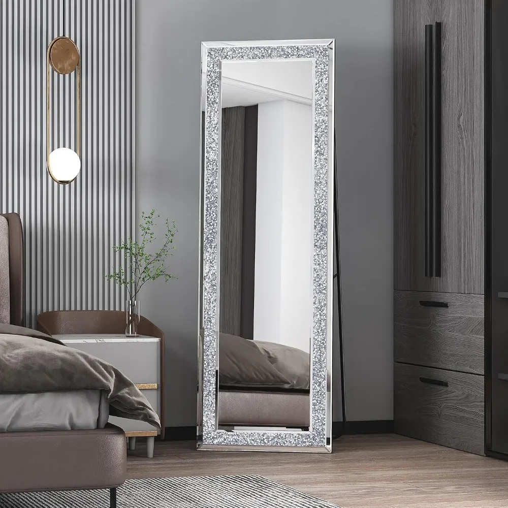 - CRYSTAL MIRROR FULL LENGTH: The full length mirror is designed with crystal crushed diamonds, the mirror is surrounded by sparkling crushed diamonds to match any style of room, the full length body mirror will brighten up the room and add a luxurious ambiance to your home.