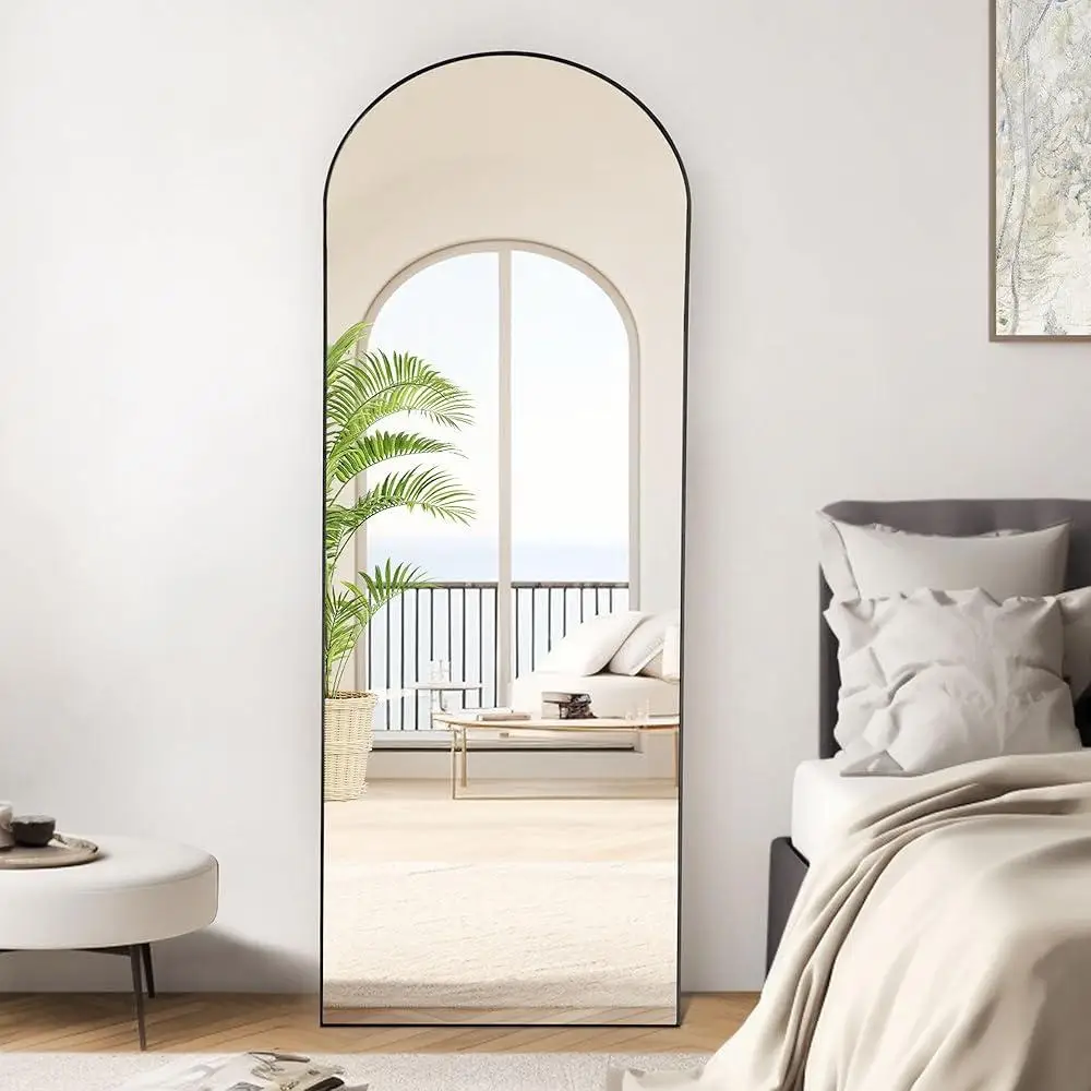 Arched Full Length Mirror with Stand Thin Aluminum Frame High Definition Explosion Proof Glass Bedroom Living Room Cloakroom