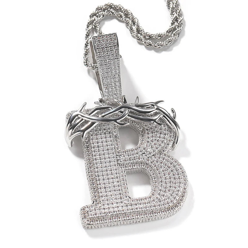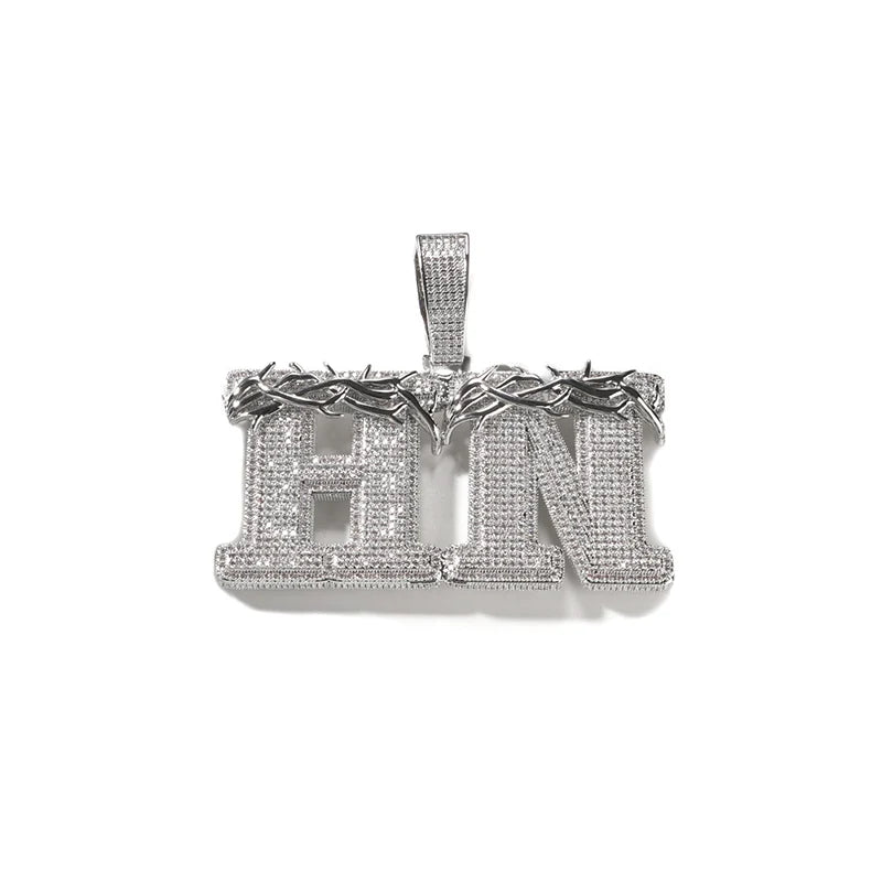 Custom Personality Thorns CZ Letters Name Pendants Necklace for Men Hip Hop Bling Iced Out Rapper Jewelry Drop Shipping