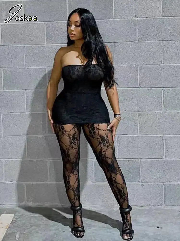 Joskaa Holiday Set Outfit For Women Black Red Lace Baddie 2 Piece Sets Outfits 2024 New Beach Sexy Leggings Club Party Outfit