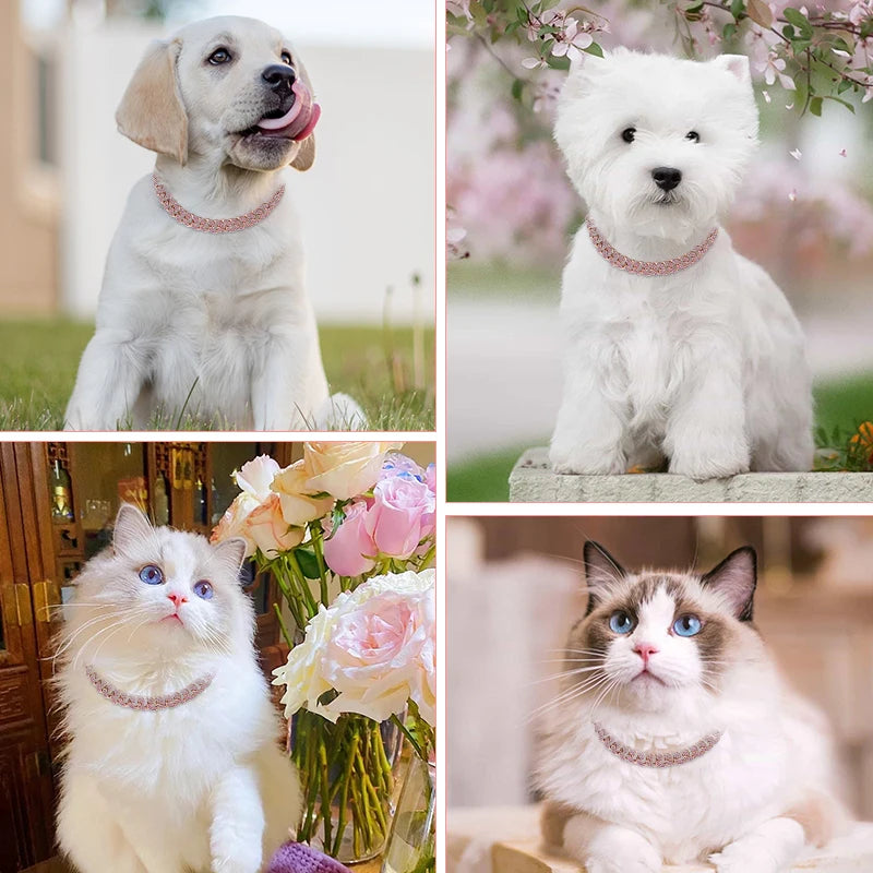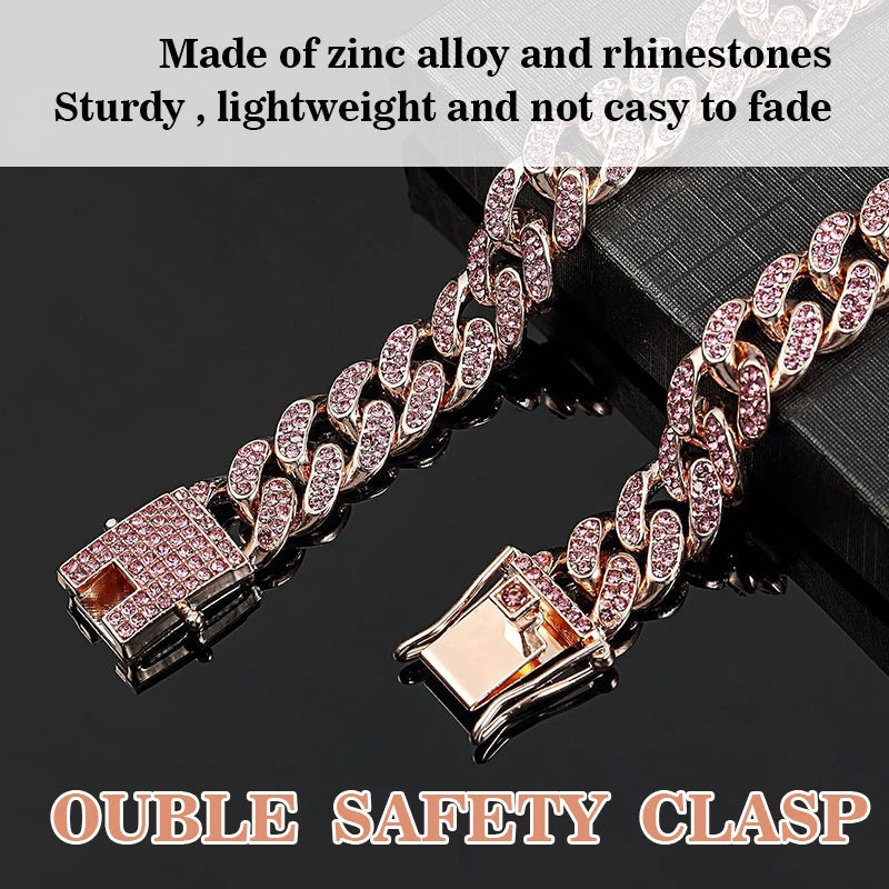 Personalized Pink Diamond Cuban Collar with Design Secure Buckle Dog Collars Gold Chain Pet Necklace for Small Medium Dogs Cat