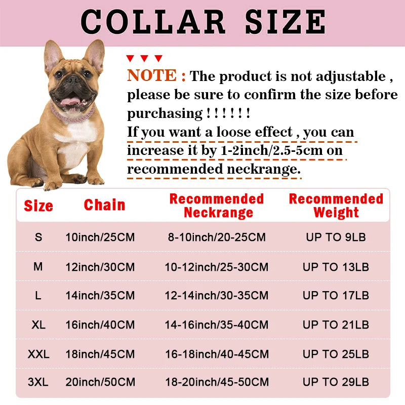 The chain collar for dogs is flexible and won't scratch your pet's skin easily. Please measure your pet's neck circumference carefully before choosing to ensure it can be worn.