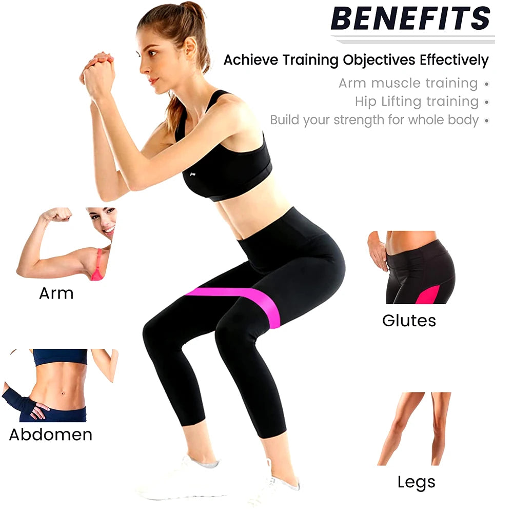 High end exercise bands. Our 12″ by 2″ heavy duty loop resistance bands come in 5 varying resistance levels. This makes them perfect whether you are just starting to workout or a seasoned workout warrior. Our extra light and light bands are great for beginners, while our medium, heavy and extra heavy exercise bands are targeted for more intermediate and advanced strength training.