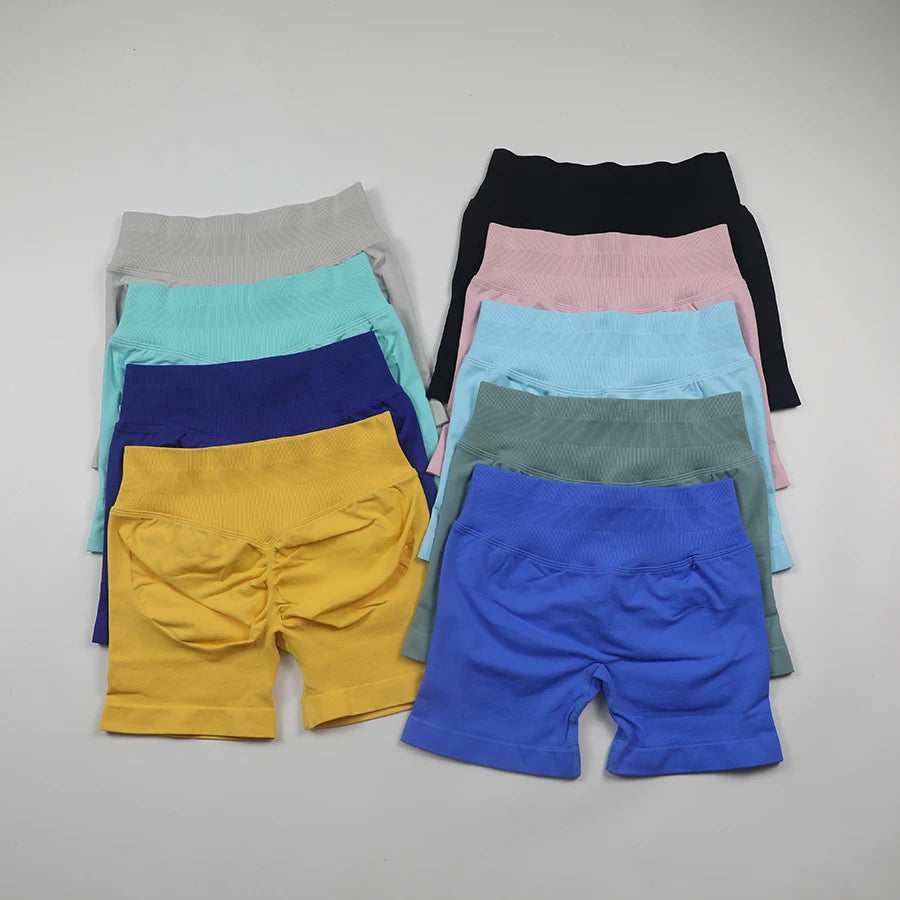 Seamless Impact Yoga Set 2PCS Sports Suit Gym Clothes Woman Halter Sports Bra+Scrunch Gym Shorts Workout Sets Women Activewear